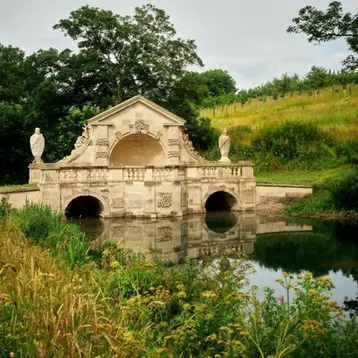 The Temple itself is a small, elegant structure that invites intimacy and connection surrounded by bird song, flowing water, surrounded by the trees of Mill Wood. Its design reflects harmony and balance, making it a perfect symbol for marriage. The Temple’s name has musical harmony as its theme. Inside houses a sculpture of Terpsichore who is one of the nine Greek muses of the arts. One of the mothers of the Sirens, she was the muse of dance and chorus, her name, Τερψιχόρη, being a literal translation of “delight in dancing” holds a aeolian harp which compliments celebrations in unity perfectly.